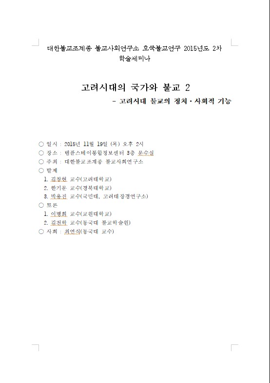 ○ 주 제: 고려시대의 국가와 불교 II : 고려시대 불교의 정치.사회적 기능