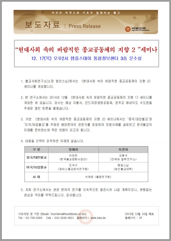 [보도자료]현대사회 속의 바람직한 종교공동체의 지향2 세미나