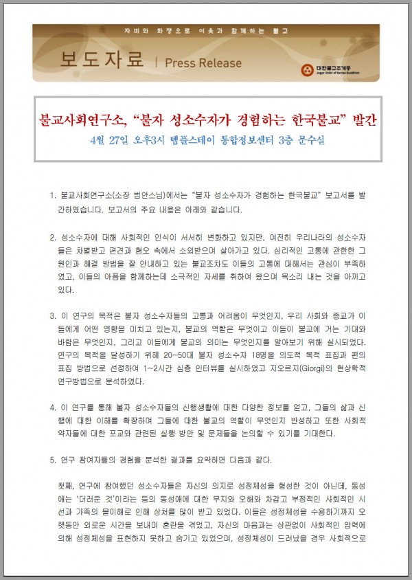 [보도자료]“불자 성소수자가 경험하는 한국불교” 발간