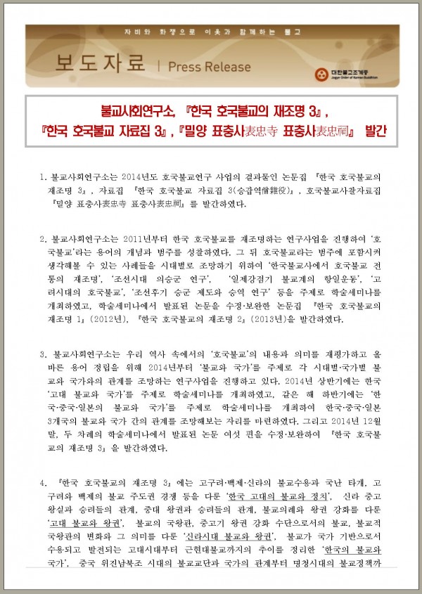 [보도자료]호국불교연구 논문집 및 자료집 발간