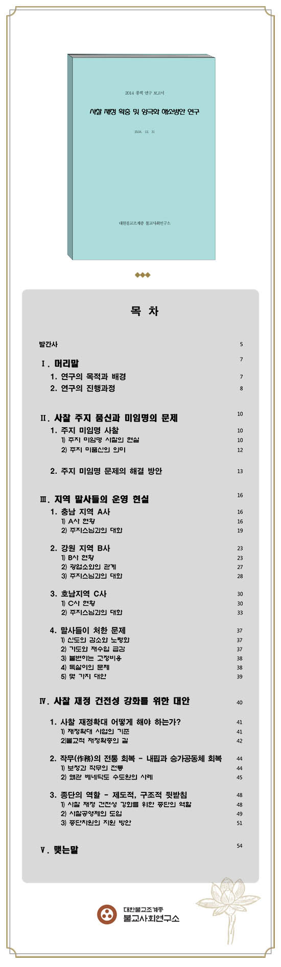 사찰 재정 확충 및 양극화 해소방안 연구 보고서 발간