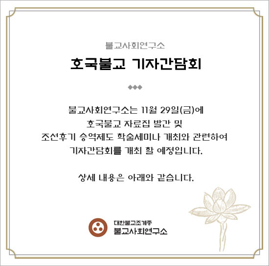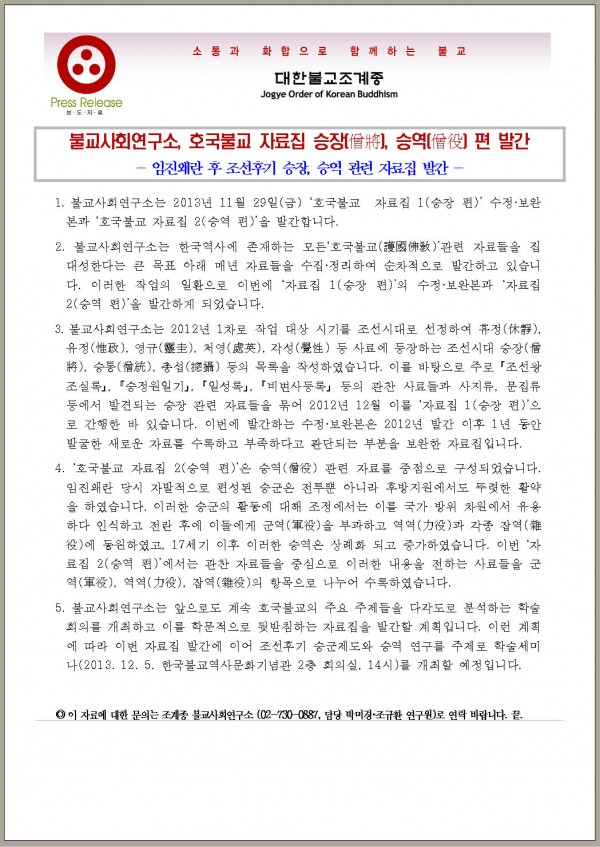 [보도자료]호국불교 자료집 발간 및 세미나개최 기자간담회(11/29) 페이지 정보 작성자 관리자 댓글 0건 조회 2,757회 작성일 18-12-27 16:39 본문 [보도자료]호국불교 자료집 발간 및 세미나개최 기자간담회(11/29) 목록 이전글[보도자료]호국불교 하반기 학술세미나 개최(12/5) 18.12.27 다음글3대 빈곤('3poor') 보고서 발간예정 18.12.27 댓글목록 댓글목록 등록된 댓글이 없습니다.