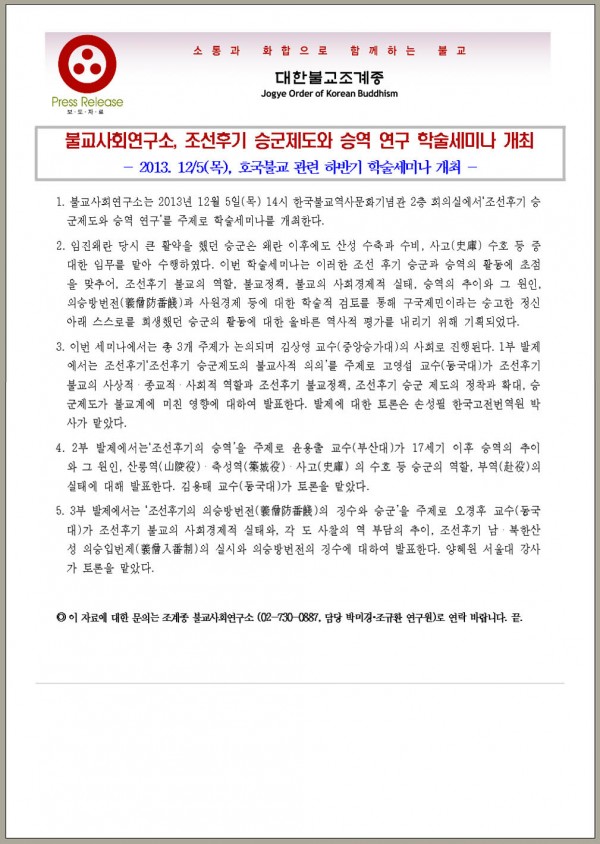 - 다음글[보도자료]호국불교 자료집 발간 및 세미나개최 기자간담회(11/29) 18.12.27