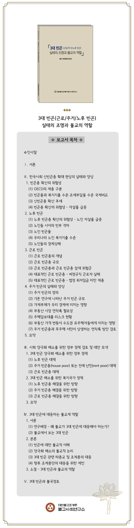 '3대빈곤 실태의 조명과 불교의 역할 보고서' 발간 안내